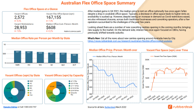 Rubberdesk’s Flexible Office Space Report examines actual flex office availability and pricing as well as trends in Australia.